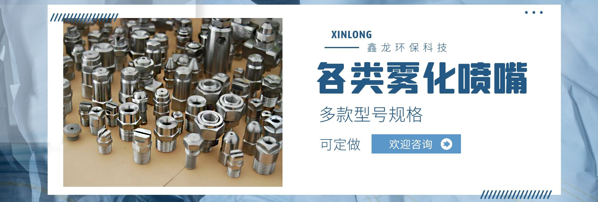 深圳市鑫龍環(huán)保科技有限公司是專業(yè)從事各類噴嘴研制和開發(fā)的廠家,技術力量雄厚,生產工藝先進,檢測手段齊全,管理制度嚴格,產品質量穩(wěn)定可靠。產品種類多達上萬種,適用于涂裝處理、環(huán)保、線路板、電子電力、汽車制造、家電制造、造紙業(yè)、紡織業(yè)、防火等行業(yè);我公司產品不僅為國內多家大中型企事業(yè)選用,還配套外銷日本、美國、東南亞等國家和地區(qū)。我們具有本行業(yè)前衛(wèi)的噴嘴制造設施,在我們裝備完善的噴嘴實驗室,可以進行各種類型噴嘴的測試研究,以優(yōu)化噴霧系統(tǒng)的性能。我公司提供專業(yè)技術、應用和售后服務,幫助用戶選擇適合的噴嘴,并保持噴嘴在良好條件下運行。從噴嘴選擇指導,到量身定制的設計,直到噴霧顆粒的測試分析,在每個訂單中都包含了我們好的技術支持,用戶反映:我司顯著的特點是銷售工程師在幫助用戶降低成本、減少加工和維修時間,降低工業(yè)用水和化學劑消耗等方面有著非常豐富的經驗,使用戶可以更經濟、更有效的解決實際問題!我們繼續(xù)堅持專業(yè)是金的理念,制造好的噴嘴是我們永遠的追求和努力!